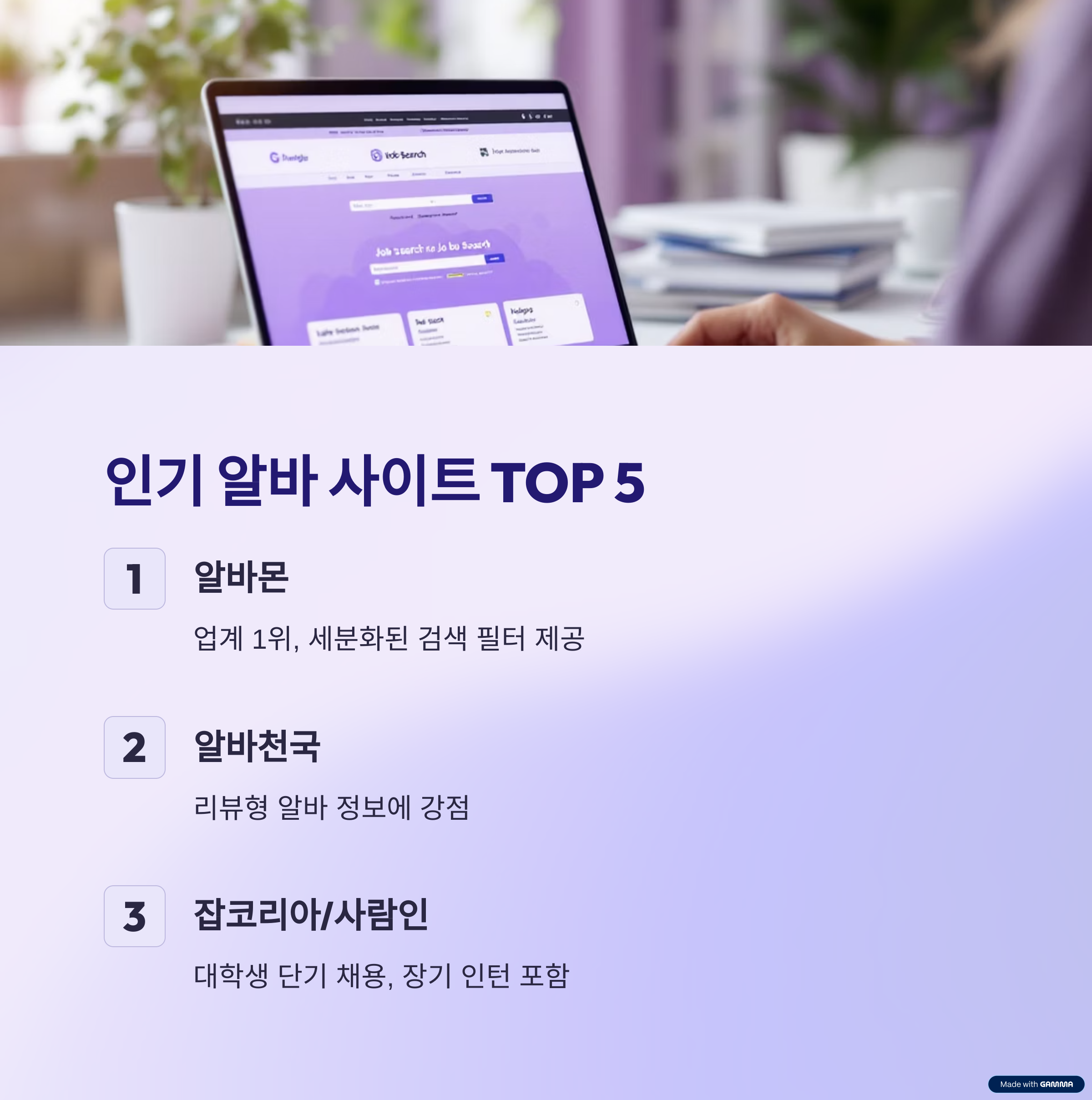 - 알바천국 (alba.co.kr) – 리뷰형 알바 정보 강점